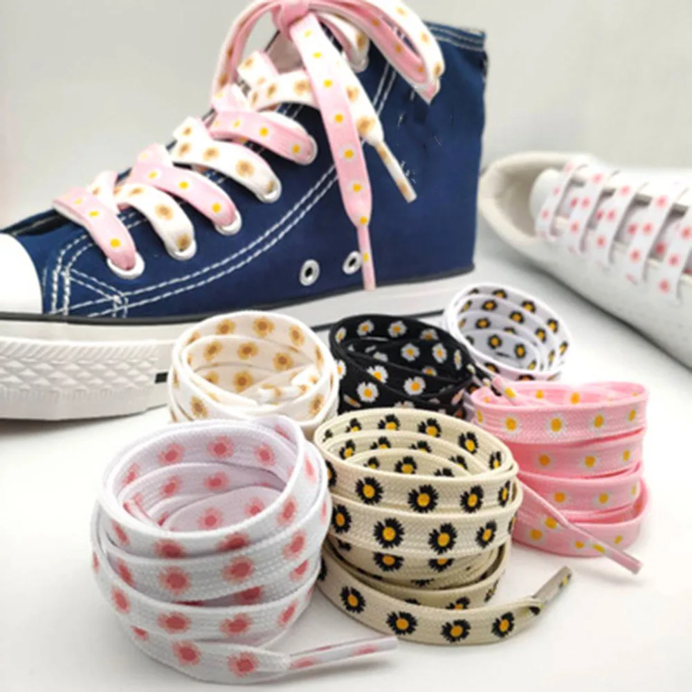 Accesorios de zapatosPromoción Cordones de margaritas con estampado de dibujos animados para hombre y mujer, zapatillas deportivas de lona con cordones, 2021 kjQlMVwaNBa